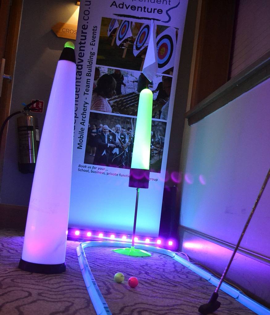 Wedding activities that your guests will love. These activities look great and are great fun for your wedding day. When your wedding is at a country house or hotel in Cumbria, how about Archery or Axe throwing in the grounds? Having a wedding disco? UV crazy golf is the perfect wedding addition!